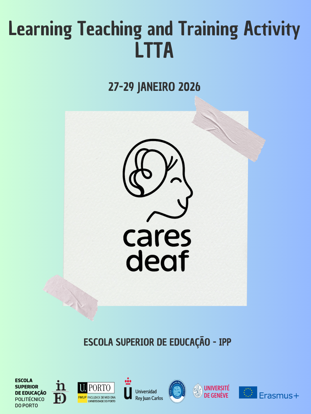 Between 27 and 29 January 2026, the Learning, Teaching and Training Activity (LTTA) of the project “CARES-Deaf – Communication Access for Quality Mental Health” will take place, bringing together partners from Necmettin Erbakan University (Turkey), the University of Geneva (Switzerland), Universidad Rey Juan Carlos (Spain), and the Faculty of Medicine of the University of Porto, at the School of Education of the Polytechnic Institute of Porto.