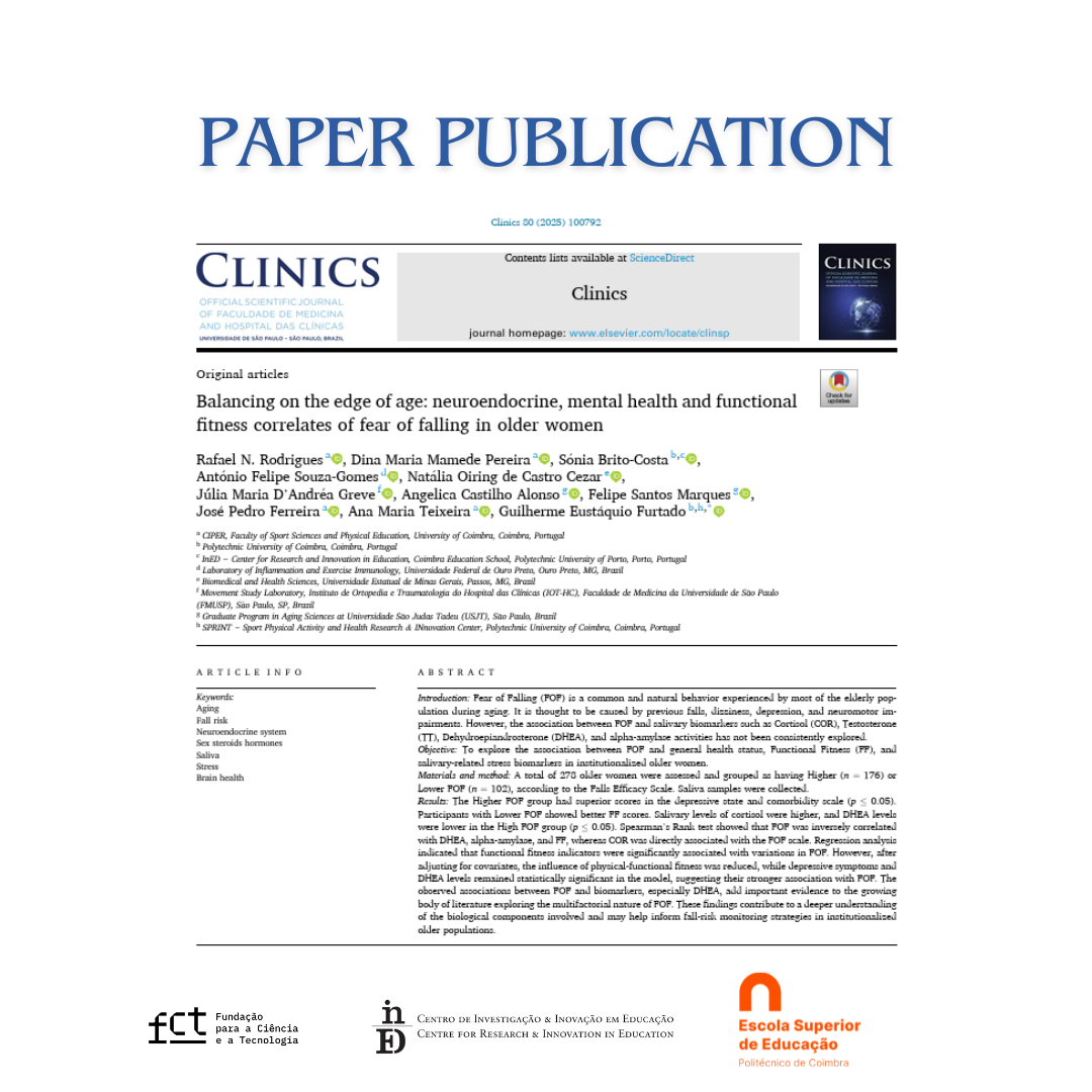 The study “Balancing on the edge of age: neuroendocrine, mental health and functional fitness correlates of fear of falling in older women” by Sónia Brito-Costa has just been published in Clinics (Elsevier).